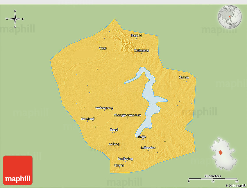 Each map style has its advantages. No map type is the best. The best is that Maphill lets you look at Shouxian from many different perspectives.