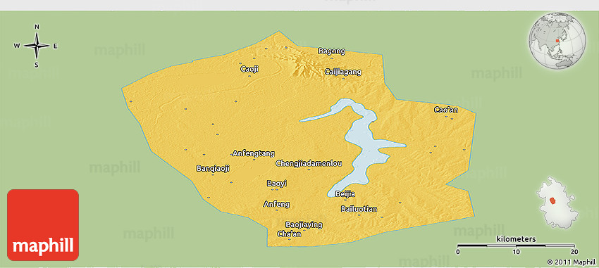 Each map style has its advantages. No map type is the best. The best is that Maphill lets you look at Shouxian from many different perspectives.