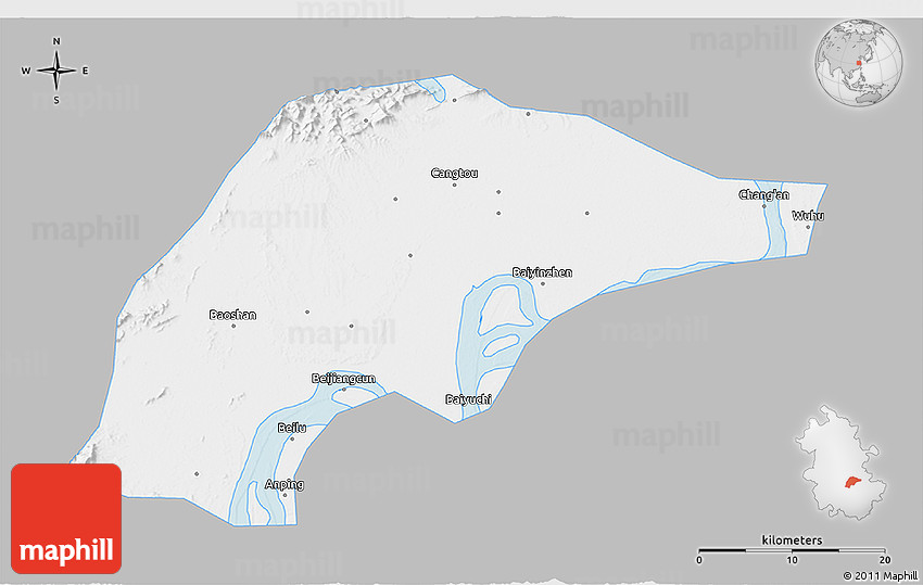 The grey colored map. Wuwei is highlighted in white. This color scheme is similar to silver styled maps, but compared to the latter, a darker shade of gray is used.