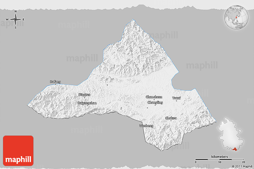 The grey colored map. Xiuning is highlighted in white. This color scheme is similar to silver styled maps, but compared to the latter, a darker shade of gray is used.
