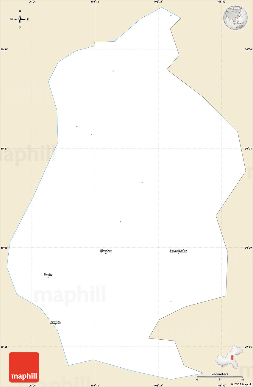 The simple classic style outline map represents one of several map types and styles available. Look at Shizhu, Chongqing, China from different perspectives.