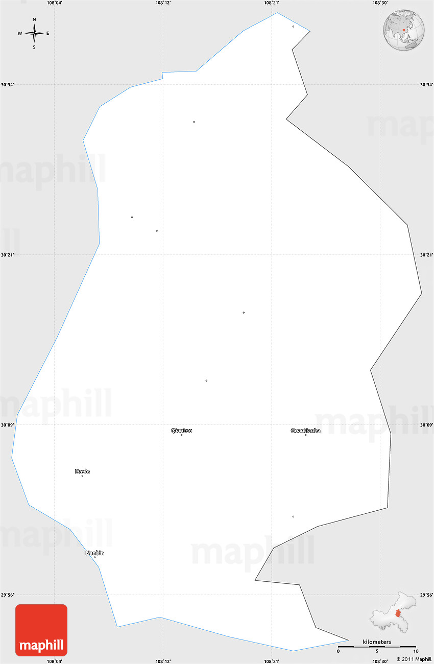 The simple silver style outline map represents one of several map types and styles available. Look at Shizhu, Chongqing, China from different perspectives.