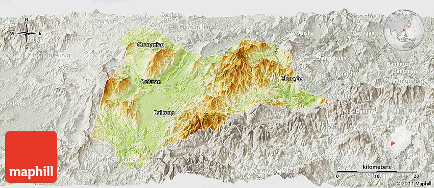 Embed the above physical panoramic map of Liancheng into your website. Enrich your blog with quality map graphics. Make the web a more beautiful place.