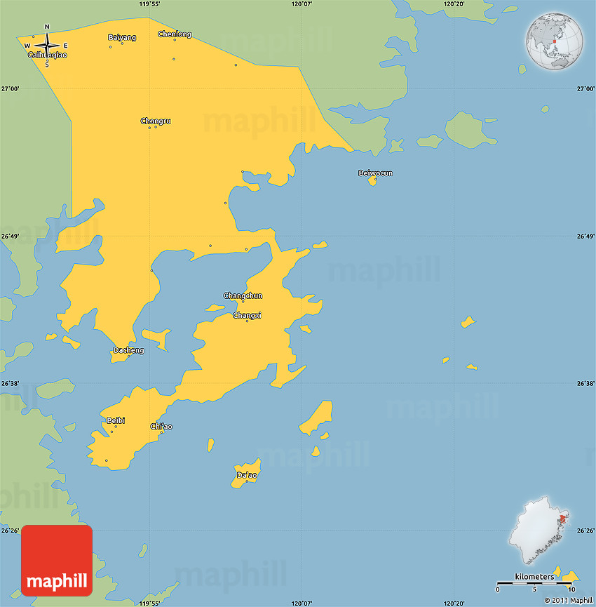 The simple savanna style outline map represents one of several map types and styles available. Look at Xiapu, Fujian, China from different perspectives.
