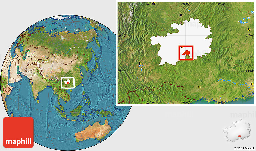 Maphill is a collection of map images. This image combines a satellite map with the globe centered on Pingtang. Use the buttons under the image to switch to different map types.