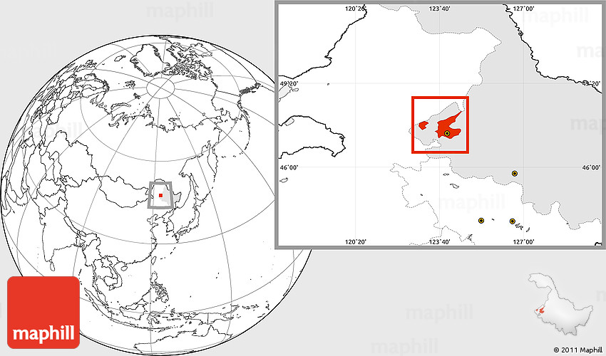 Maphill is a collection of map images. This image combines a blank map with the globe centered on Qiqihar Shi. Use the buttons under the image to switch to different map types.