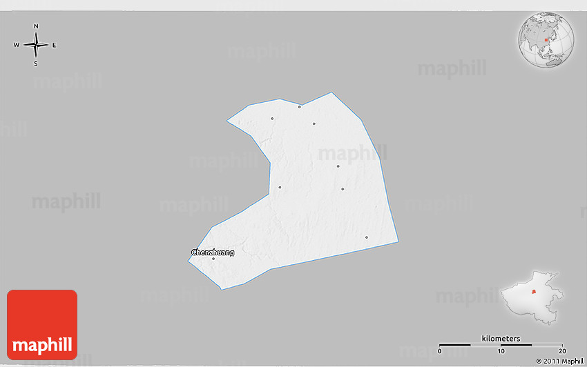 The grey colored map. Xinzheng is highlighted in white. This color scheme is similar to silver styled maps, but compared to the latter, a darker shade of gray is used.
