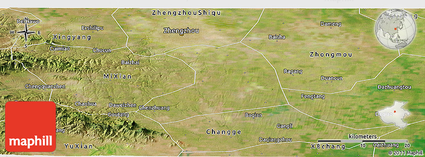 Embed the above satellite panoramic map of Xinzheng into your website. Enrich your blog with quality map graphics. Make the web a more beautiful place.