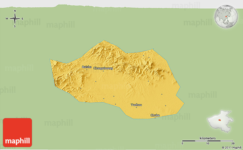Maphill is a collection of map images. This view of Yu Xian at an angle of 60° is one of these images. Click on the Detailed button under the map for a more comprehensive map.