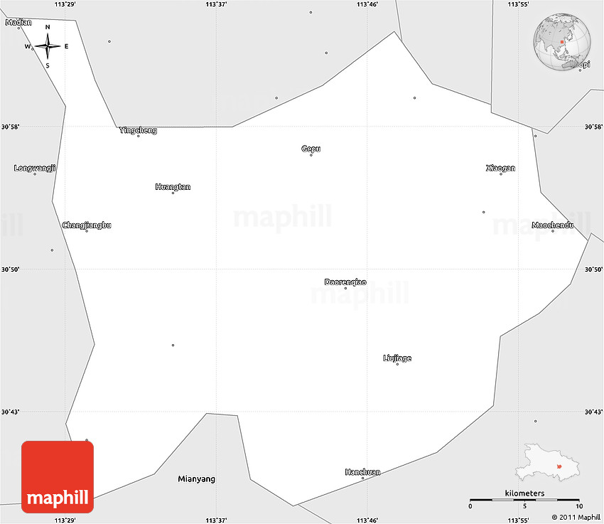 Embed the above silver style simple map of Hanchuan into your website. Enrich your blog with quality map graphics. Make the web a more beautiful place.