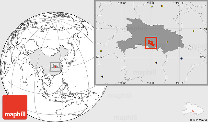 Maphill is a collection of map images. This image combines a blank map with the globe centered on Jiangling. Use the buttons under the image to switch to different map types.