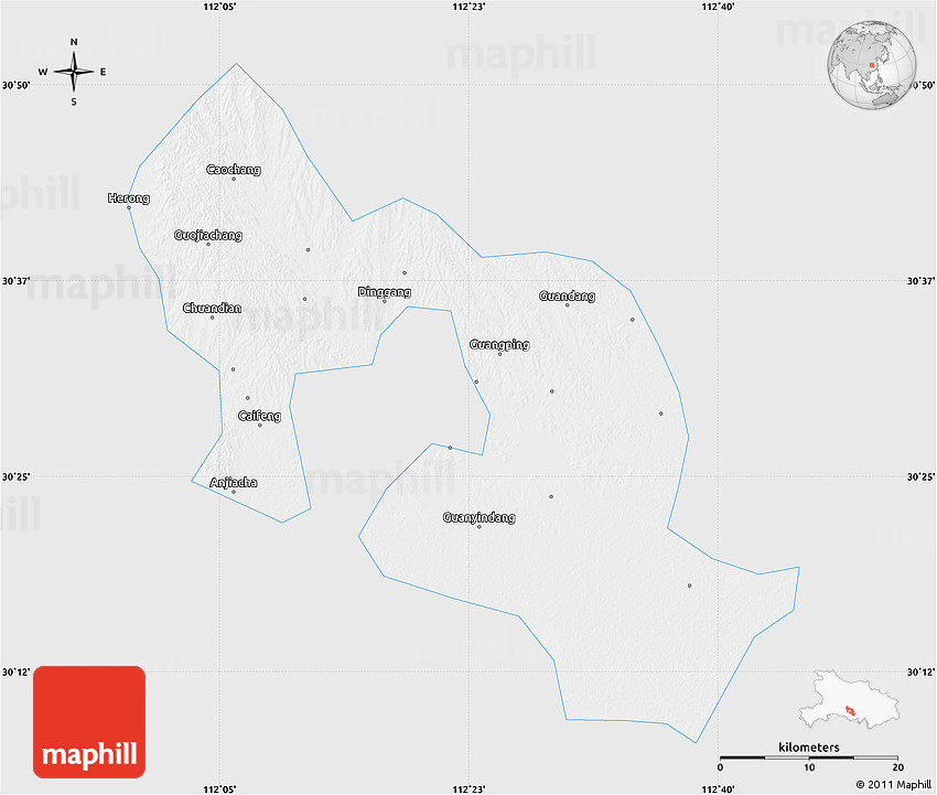 Maphill is a collection of map images. This silver style map of Jiangling is one of them. Click on the Detailed button under the image to switch to a more detailed map.