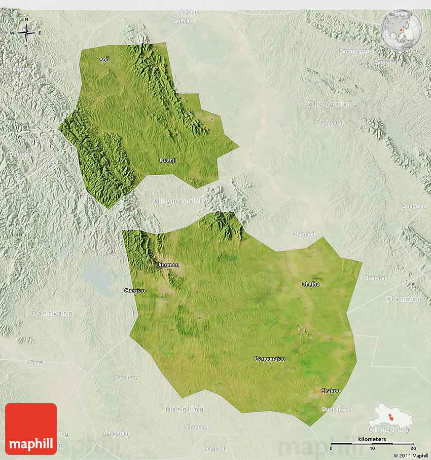 Satellite map shows the Earth's surface as it really looks like. The above map is based on satellite images taken on July 2004. This satellite map of Jingmen is meant for illustration purposes only. For more detailed maps based on newer satellite and aerial images switch to a detailed map view.