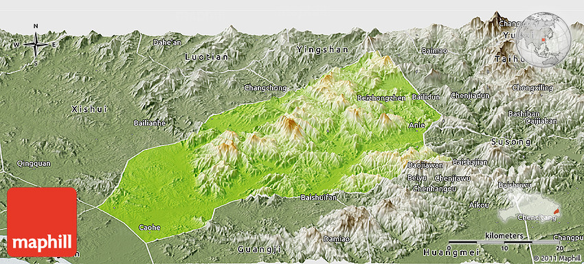 Embed the above physical panoramic map of Qichun into your website. Enrich your blog with quality map graphics. Make the web a more beautiful place.