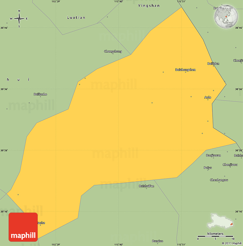 The simple savanna style outline map represents one of several map types and styles available. Look at Qichun, Hubei, China from different perspectives.