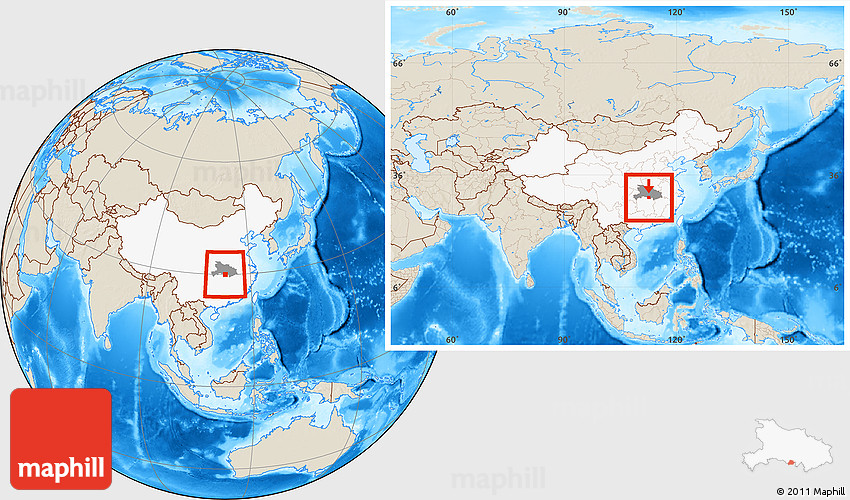 Maphill is a collection of map images. This image combines a shaded relief map with the globe centered on Shishou. Use the buttons under the image to switch to different map types.