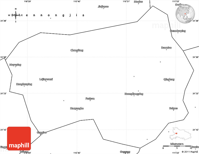 The simple blank outline map represents one of several map types and styles available. Look at Xingshan, Hubei, China from different perspectives.