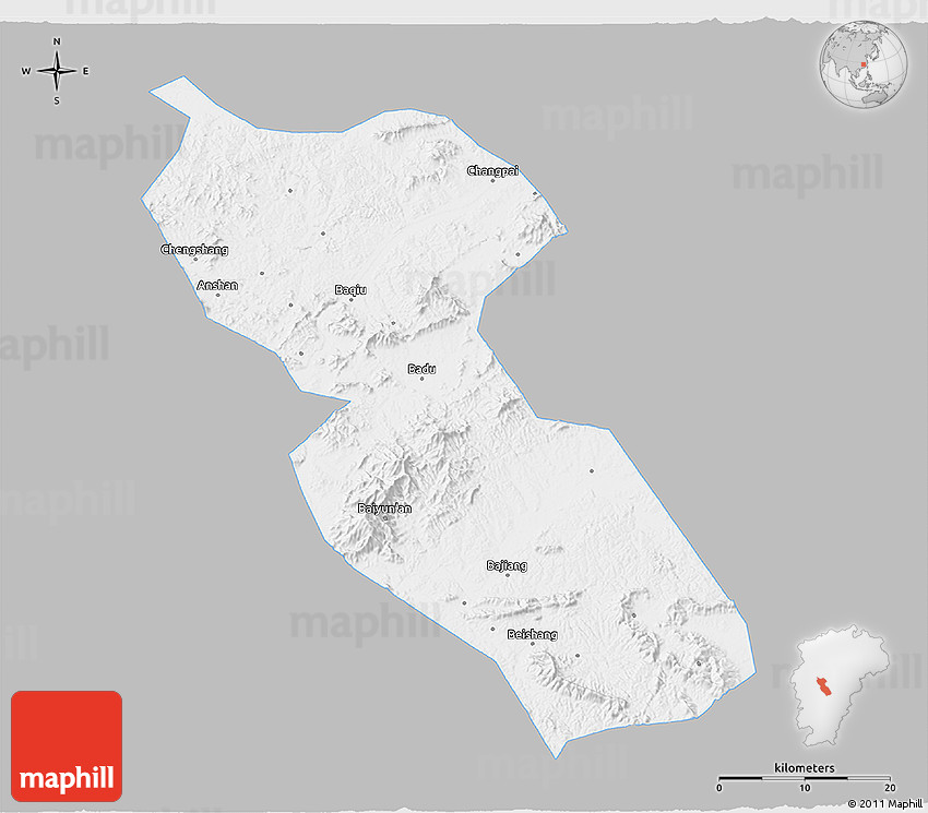 The grey colored map. Jishui is highlighted in white. This color scheme is similar to silver styled maps, but compared to the latter, a darker shade of gray is used.
