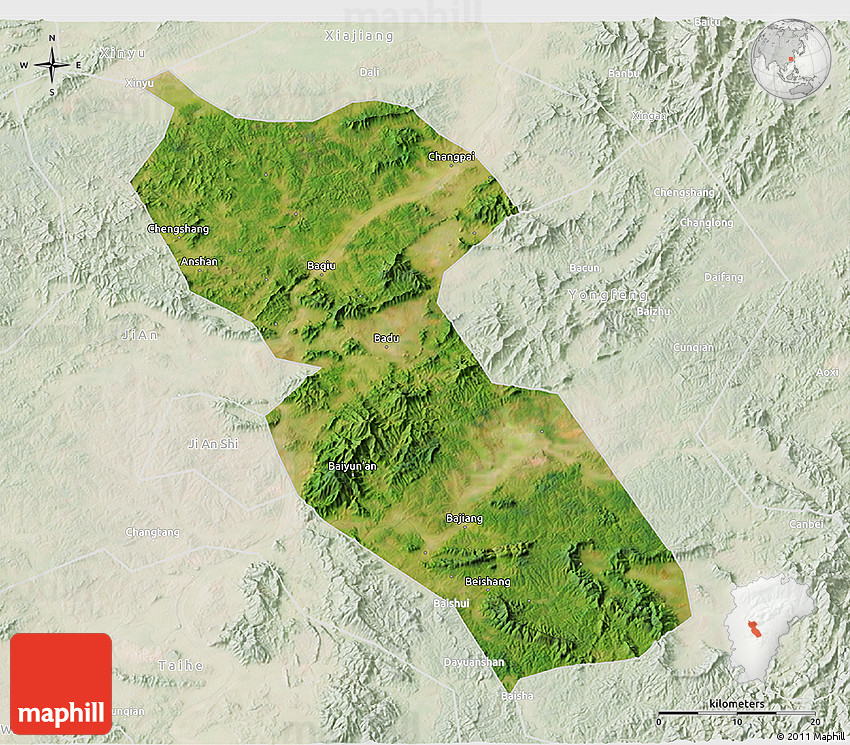 Satellite map shows the Earth's surface as it really looks like. The above map is based on satellite images taken on July 2004. This satellite map of Jishui is meant for illustration purposes only. For more detailed maps based on newer satellite and aerial images switch to a detailed map view.