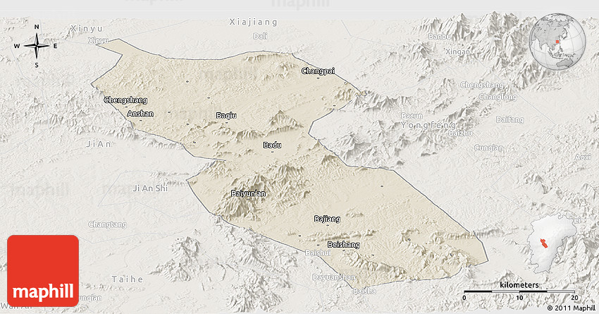 Each map type offers different information and each map style is designed for a different purpose. Read about the styles and map projection used in the above map (Shaded Relief Panoramic Map of Jishui, lighten).