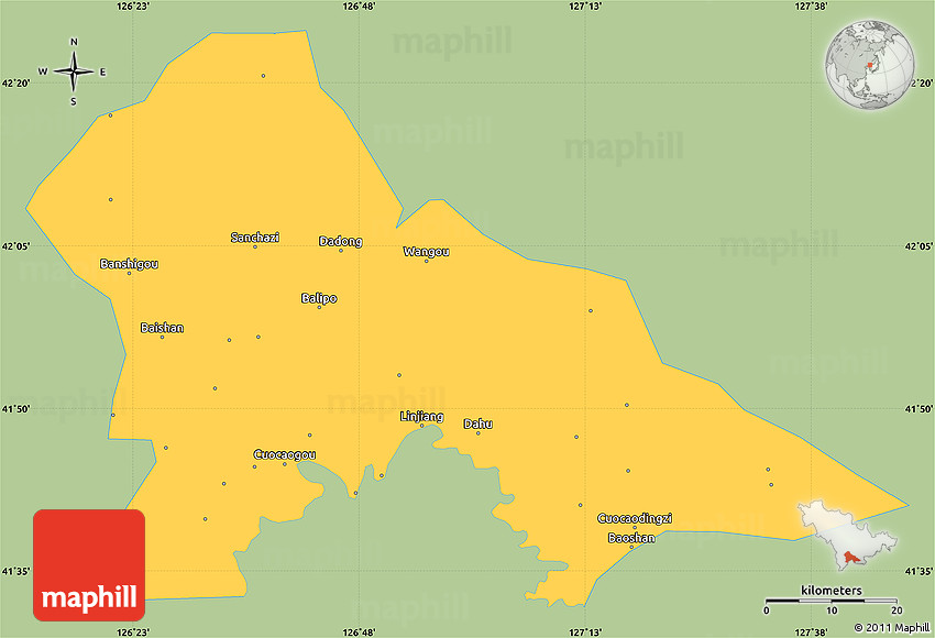 Embed the above savanna style simple map of Hunjiang Shi into your website. Enrich your blog with quality map graphics. Make the web a more beautiful place.