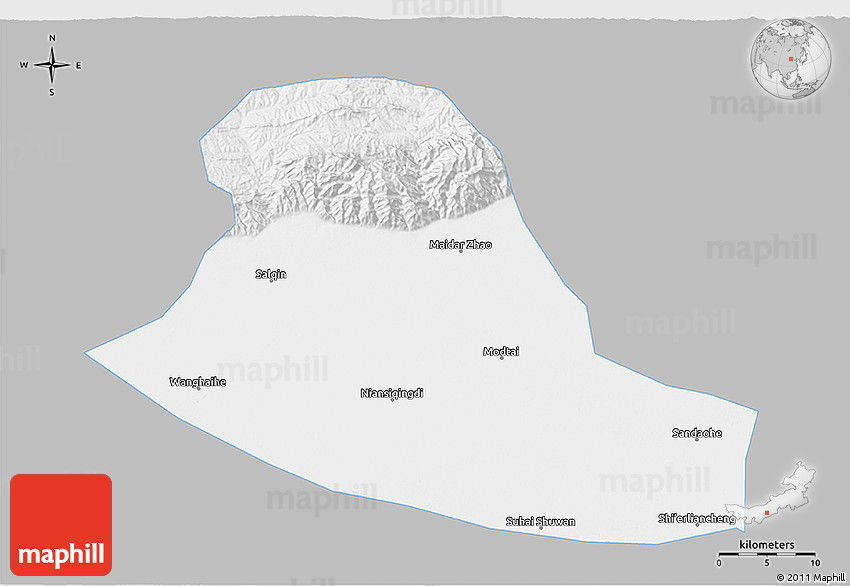 The grey colored map. Tumd Zouqi is highlighted in white. This color scheme is similar to silver styled maps, but compared to the latter, a darker shade of gray is used.