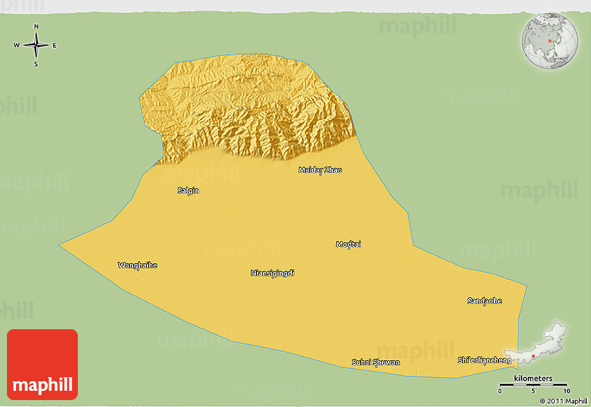 Embed the above savanna style 3D map of Tumd Zouqi into your website. Enrich your blog with quality map graphics. Make the web a more beautiful place.