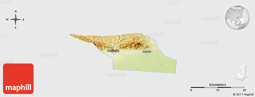 Each map type offers different information and each map style is designed for a different purpose. Read about the styles and map projection used in the above map (Physical Panoramic Map of Jingyang, single color outside).