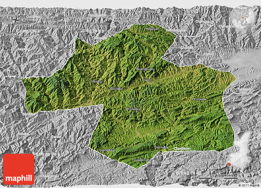 Each map type offers different information and each map style is designed for a different purpose. Read about the styles and map projection used in the above map (Satellite 3D Map of Ningqiang, lighten, desaturated).