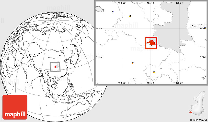 Maphill is a collection of map images. This image combines a blank map with the globe centered on Ningqiang. Use the buttons under the image to switch to different map types.