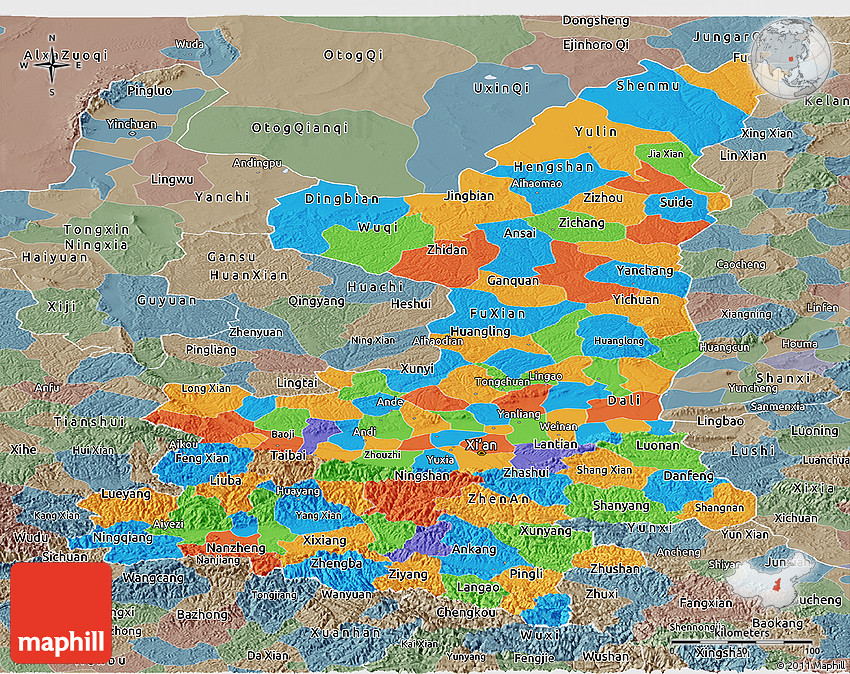 The panoramic political map represents one of many map types and styles available. Look at Shaanxi from different perspectives.