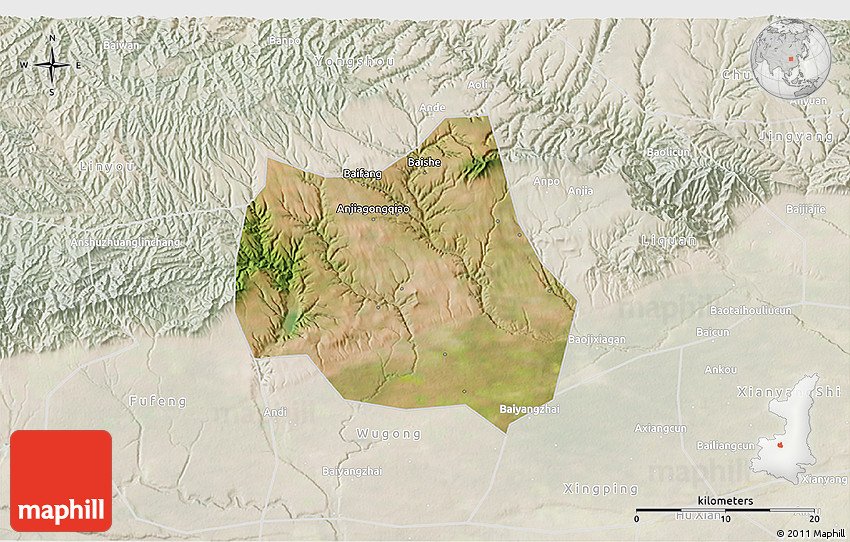 Satellite map shows the Earth's surface as it really looks like. The above map is based on satellite images taken on July 2004. This satellite map of Qian Xian is meant for illustration purposes only. For more detailed maps based on newer satellite and aerial images switch to a detailed map view.