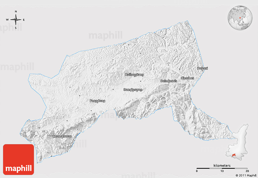 Each map type offers different information and each map style is designed for a different purpose. Read about the styles and map projection used in the above map (Silver Style 3D Map of Xixiang, single color outside).