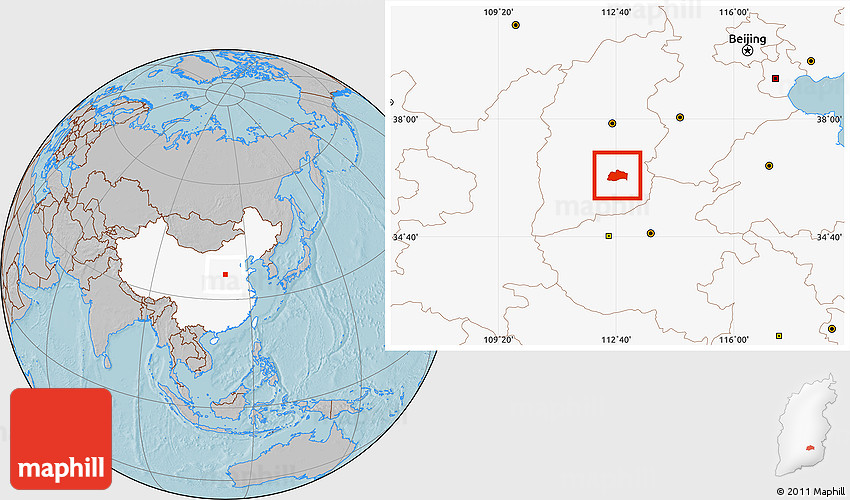 Maphill is a collection of map images. This image combines a gray map with the globe centered on Tunliu. Use the buttons under the image to switch to different map types.