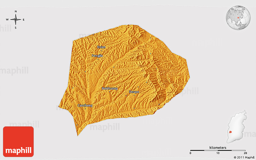 Each map type offers different information and each map style is designed for a different purpose. Read about the styles and map projection used in the above map (Political 3D Map of Xi Xian, cropped outside).