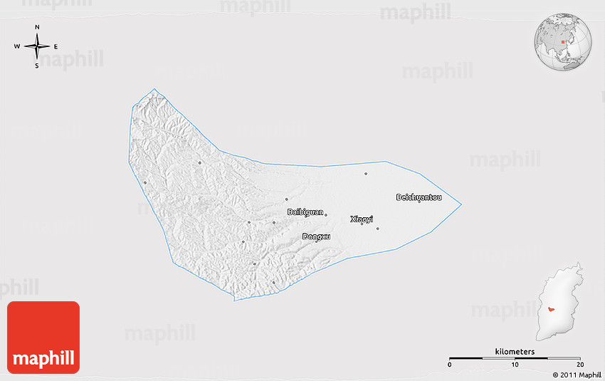 Each map type offers different information and each map style is designed for a different purpose. Read about the styles and map projection used in the above map (Silver Style 3D Map of Xiaoyi, single color outside).