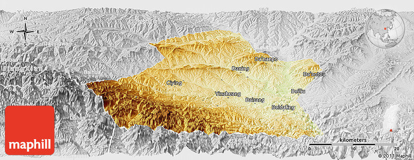 The panoramic physical map represents one of several map types and styles available. Look at Yangcheng, Shanxi, China from different perspectives.