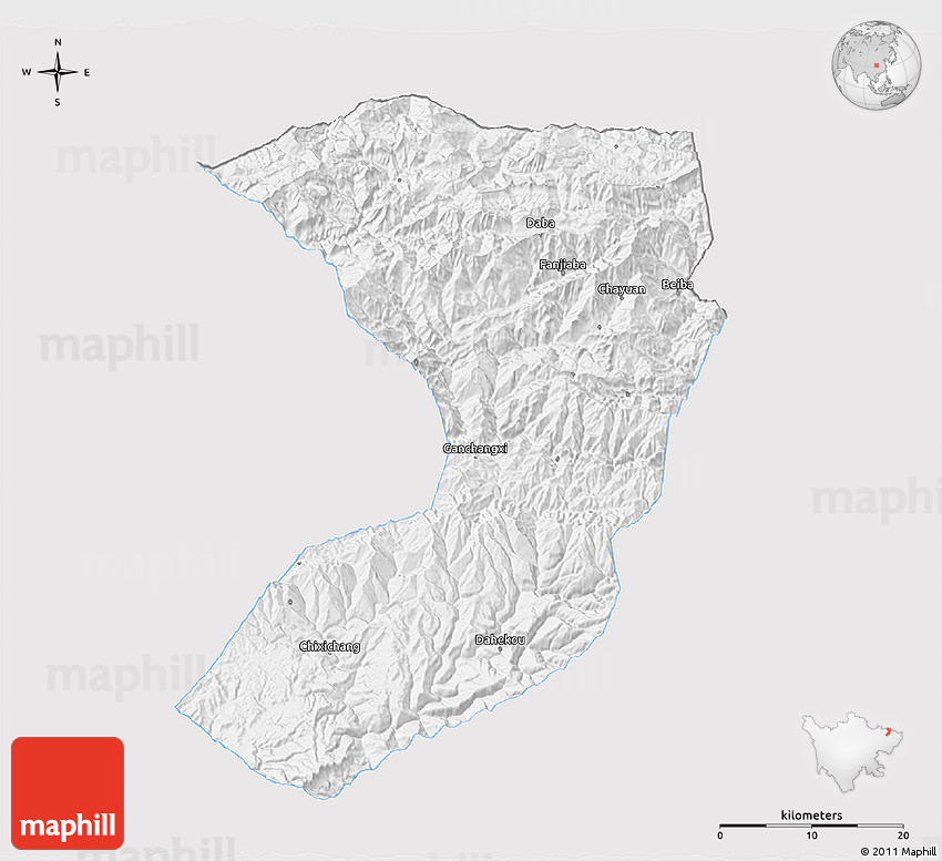 Each map type offers different information and each map style is designed for a different purpose. Read about the styles and map projection used in the above map (Silver Style 3D Map of Nanjiang, single color outside).