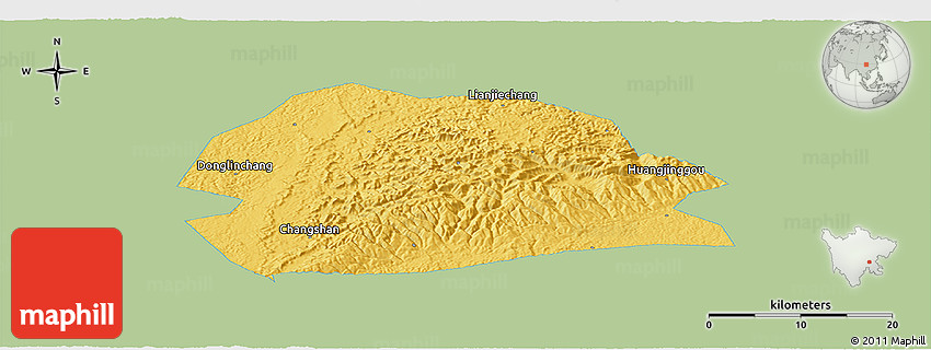 Each map type offers different information and each map style is designed for a different purpose. Read about the styles and map projection used in the above map (Savanna Style Panoramic Map of Rong Xian, single color outside).