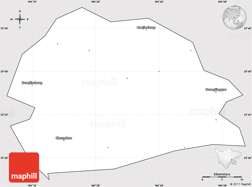 The simple silver style outline map represents one of several map types and styles available. Look at Rong Xian, Sichuan, China from different perspectives.