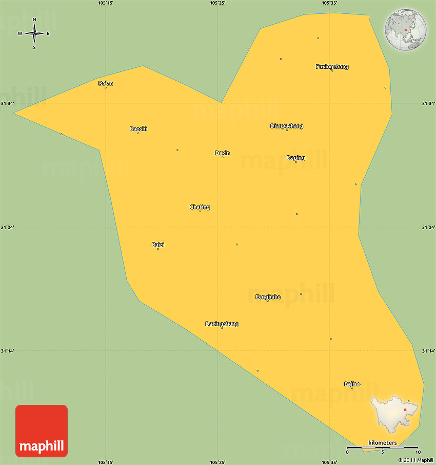 Embed the above savanna style simple map of Yanting into your website. Enrich your blog with quality map graphics. Make the web a more beautiful place.