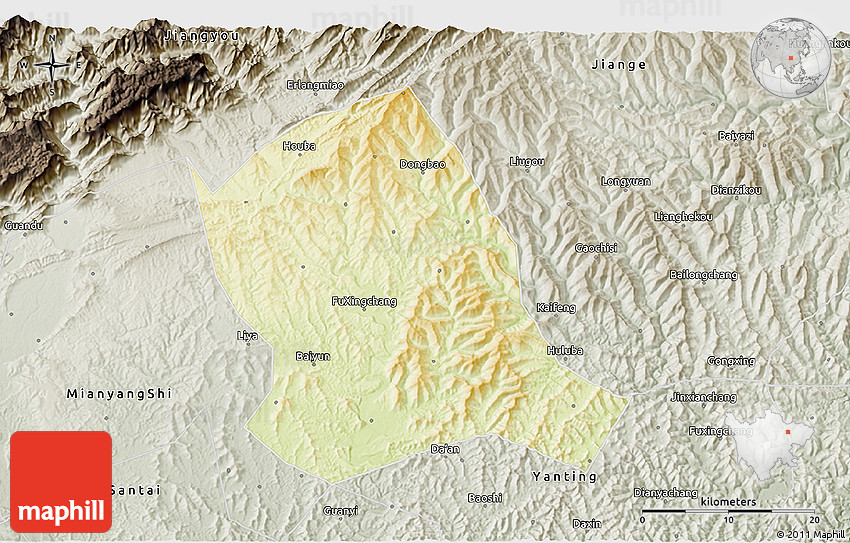 Each map style has its advantages. No map type is the best. The best is that Maphill lets you look at Zitong from many different perspectives.
