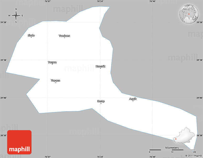 The simple gray outline map represents one of several map types and styles available. Look at Shule, Xinjiang Uygur, China from different perspectives.