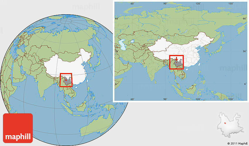 Each map type offers different information and each map style is designed for a different purpose. Read about the styles and map projection used in the above map (Savanna Style Location Map of Dali, highlighted country, highlighted parent region, within the entire country).