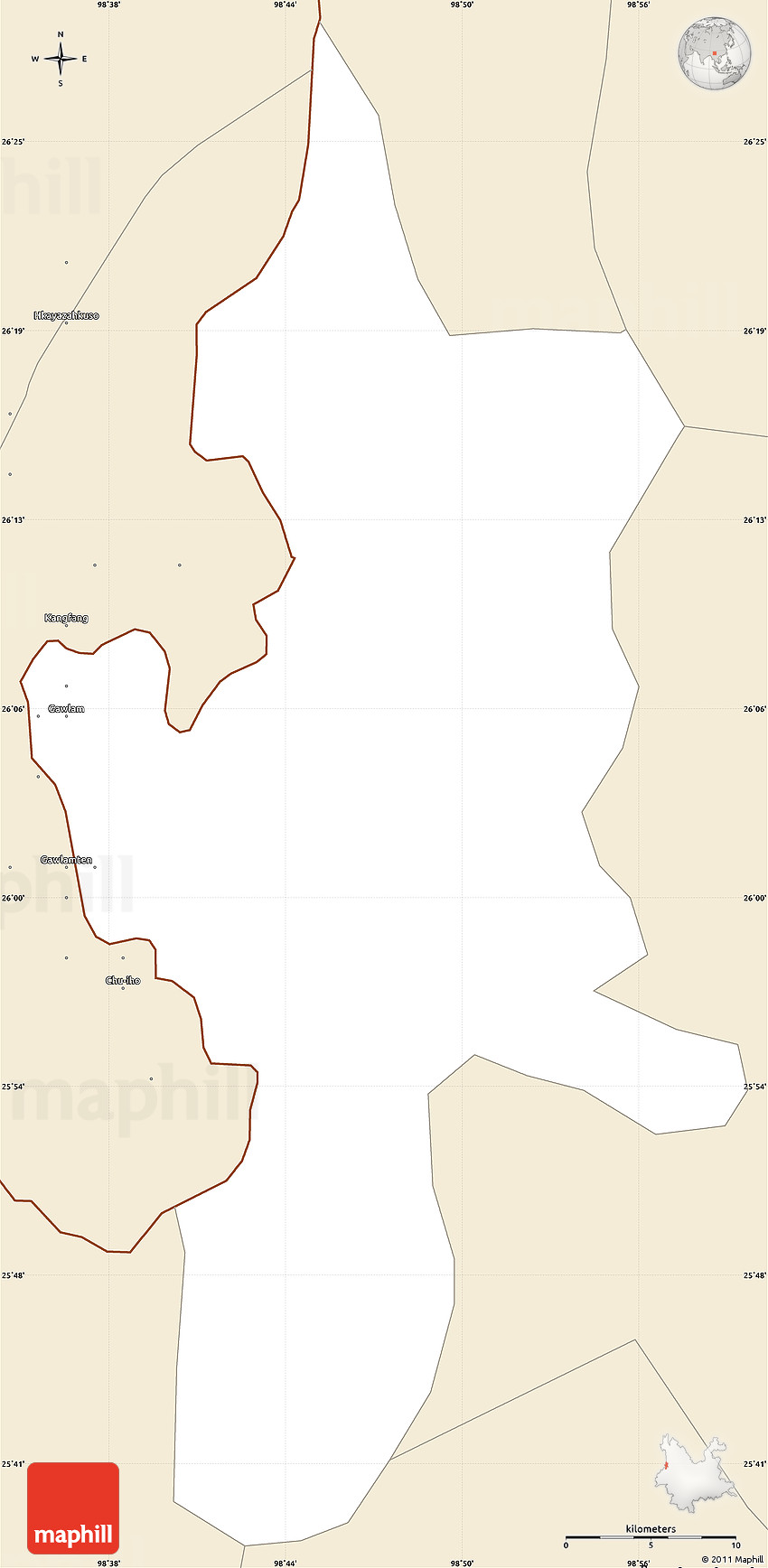 The simple classic style outline map represents one of several map types and styles available. Look at Lushui, Yunnan, China from different perspectives.