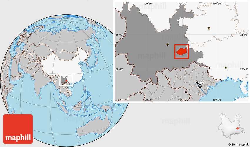 Maphill is a collection of map images. This image combines a gray map with the globe centered on Qiubei. Use the buttons under the image to switch to different map types.