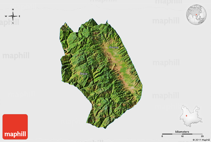 Satellite map shows the Earth's surface as it really looks like. The above map is based on satellite images taken on July 2004. This satellite map of Weishan is meant for illustration purposes only. For more detailed maps based on newer satellite and aerial images switch to a detailed map view.