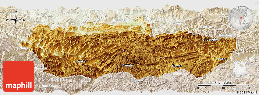 Embed the above physical panoramic map of Zhenxiong into your website. Enrich your blog with quality map graphics. Make the web a more beautiful place.