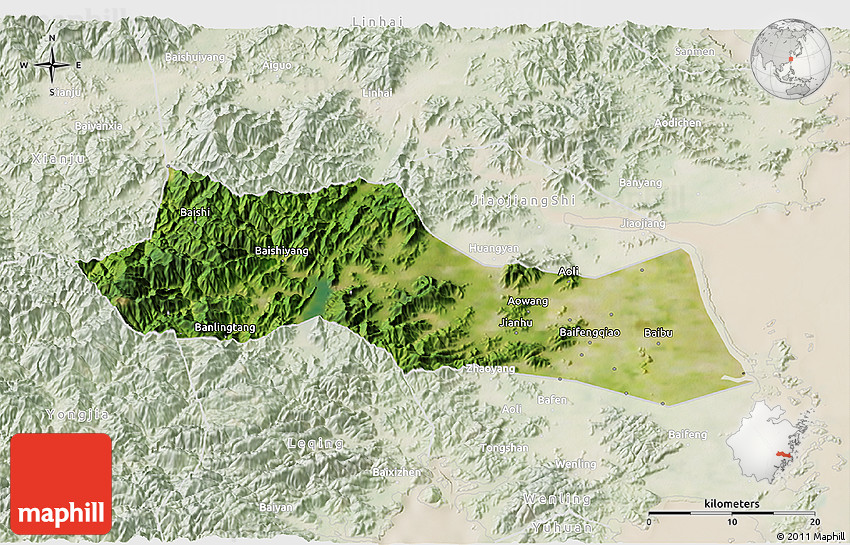 Satellite map shows the Earth's surface as it really looks like. The above map is based on satellite images taken on July 2004. This satellite map of Huangyan is meant for illustration purposes only. For more detailed maps based on newer satellite and aerial images switch to a detailed map view.