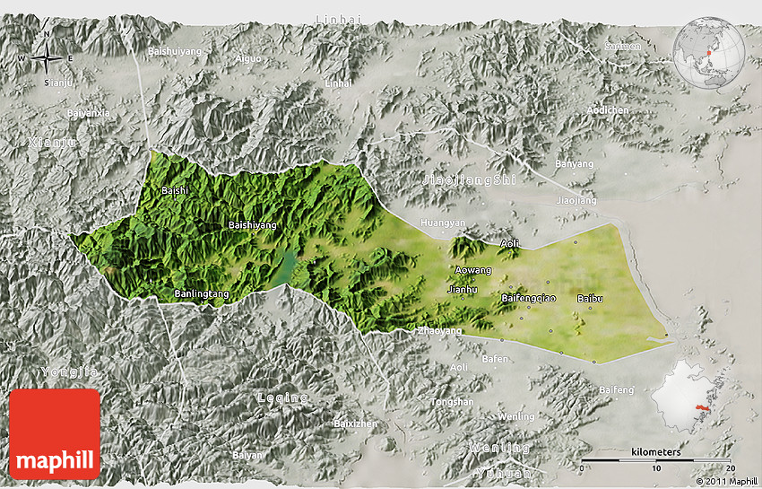Satellite map shows the Earth's surface as it really looks like. The above map is based on satellite images taken on July 2004. This satellite map of Huangyan is meant for illustration purposes only. For more detailed maps based on newer satellite and aerial images switch to a detailed map view.